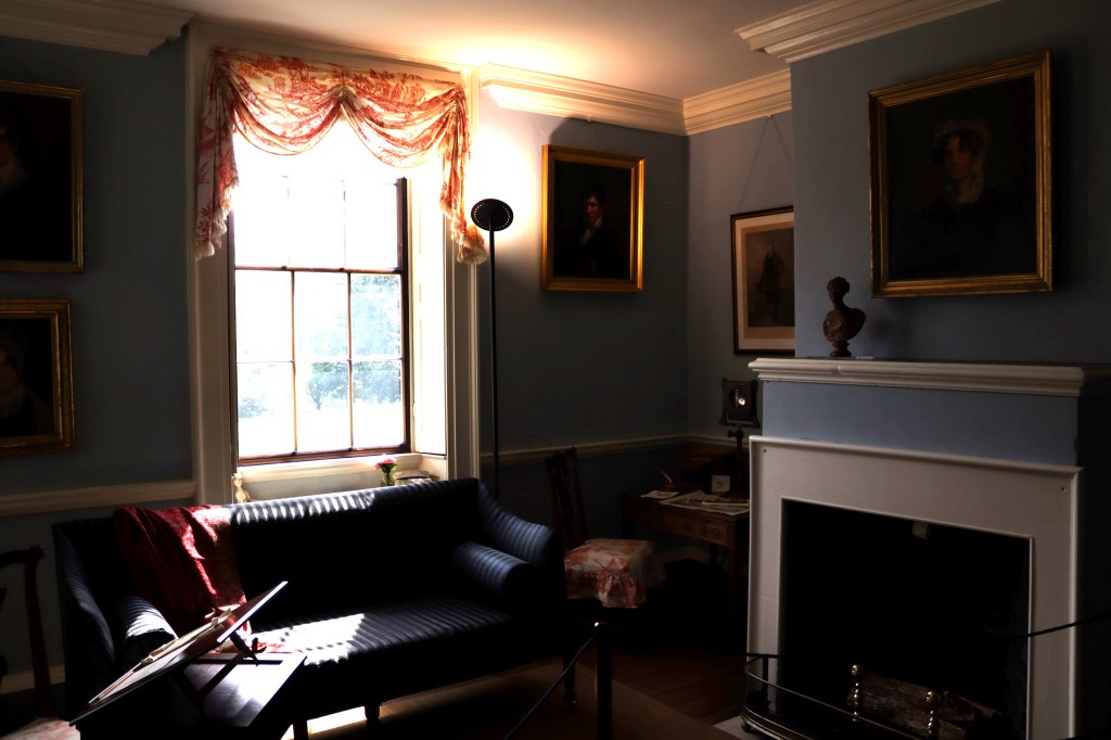Next door to the entrance hall at Monticello is a small sitting room. While the room was difficult to photograph with the bright light from outside, some of the details can still be seen. One of the prints on the wall is of Lafayette, who is depicted several times throughout the house.