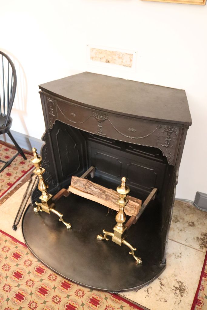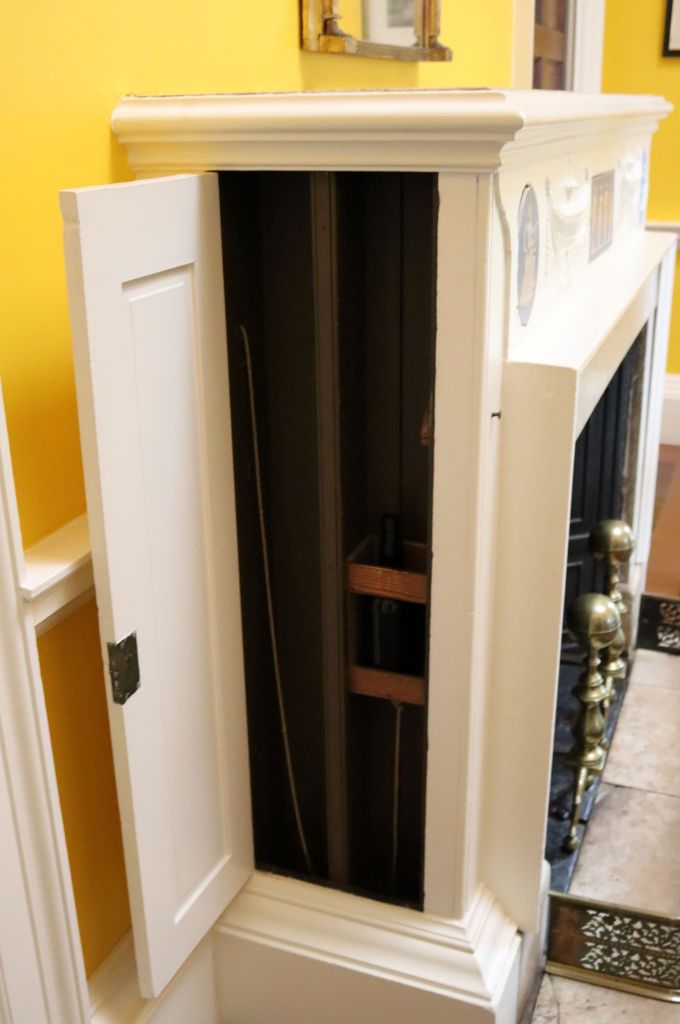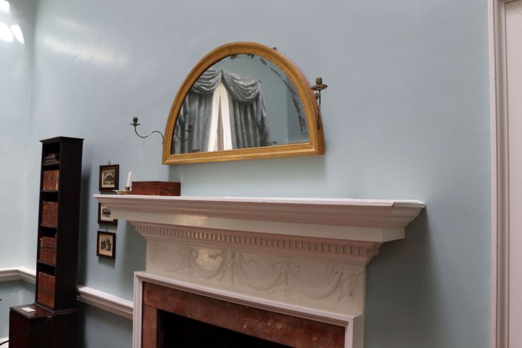 While the original wallpaper is long-gone, traces of it can be seen in a patch above the fireplace.