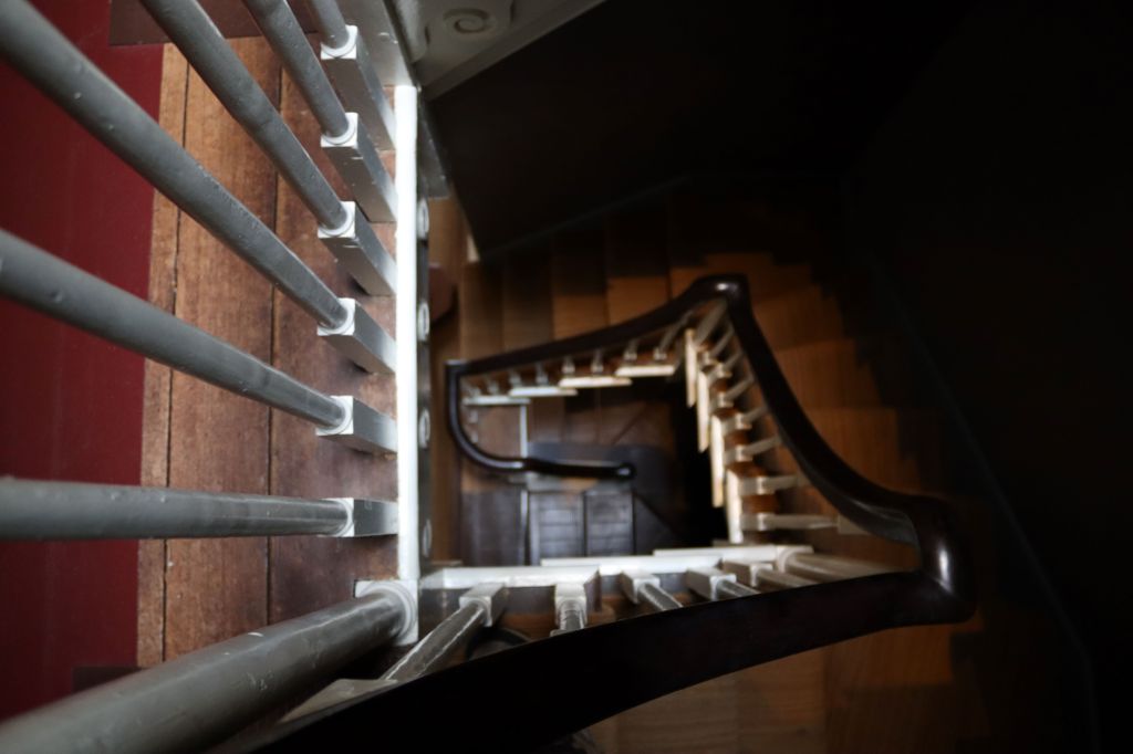 To get between the upper three floors of Monticello, these narrow, steep stairs are used. There are two identical sets of stairs in the home.