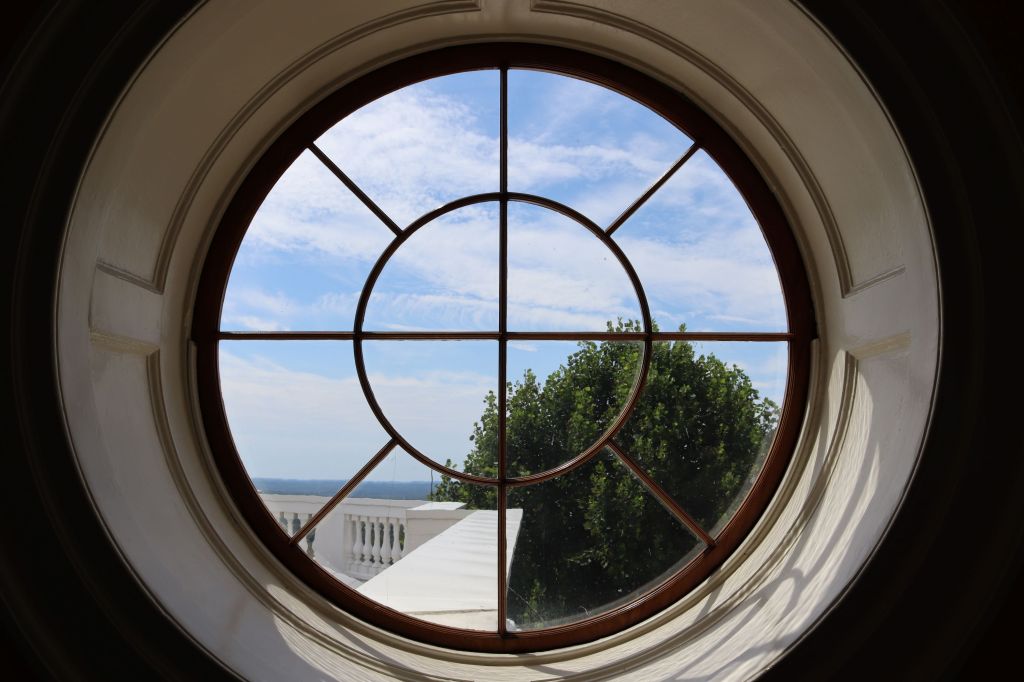 The glass in the oculus gave Jefferson trouble. He hoped it could be one piece of glass, but every time he ordered a custom-made piece from Europe it shattered. He eventually settled for two pieces of glass, which survived the voyage.