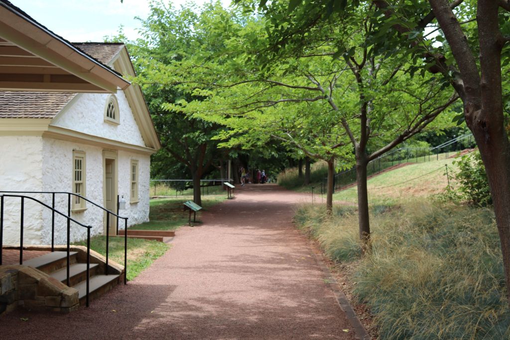 To the south of Monticello was a row of structures called Mulberry Row. Found here were houses for those enslaved at the plantation and several workshops. Originally, a tall fence ran behind it. Only a small section has been rebuilt today.