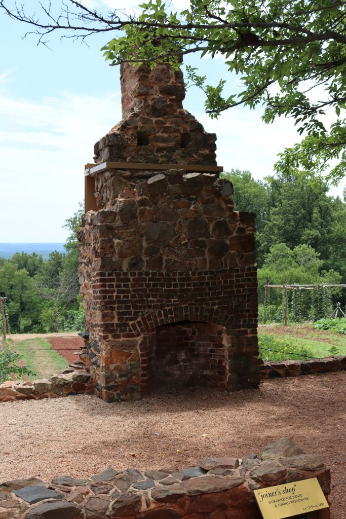 Monticello’s Mulberry Row has several structures used by enslaved workers, some original and some reconstructions. These include a blacksmith’s forge, a textile building, and a chimney surviving from a wood joiner’s shop.