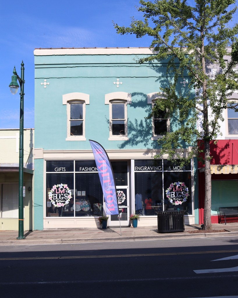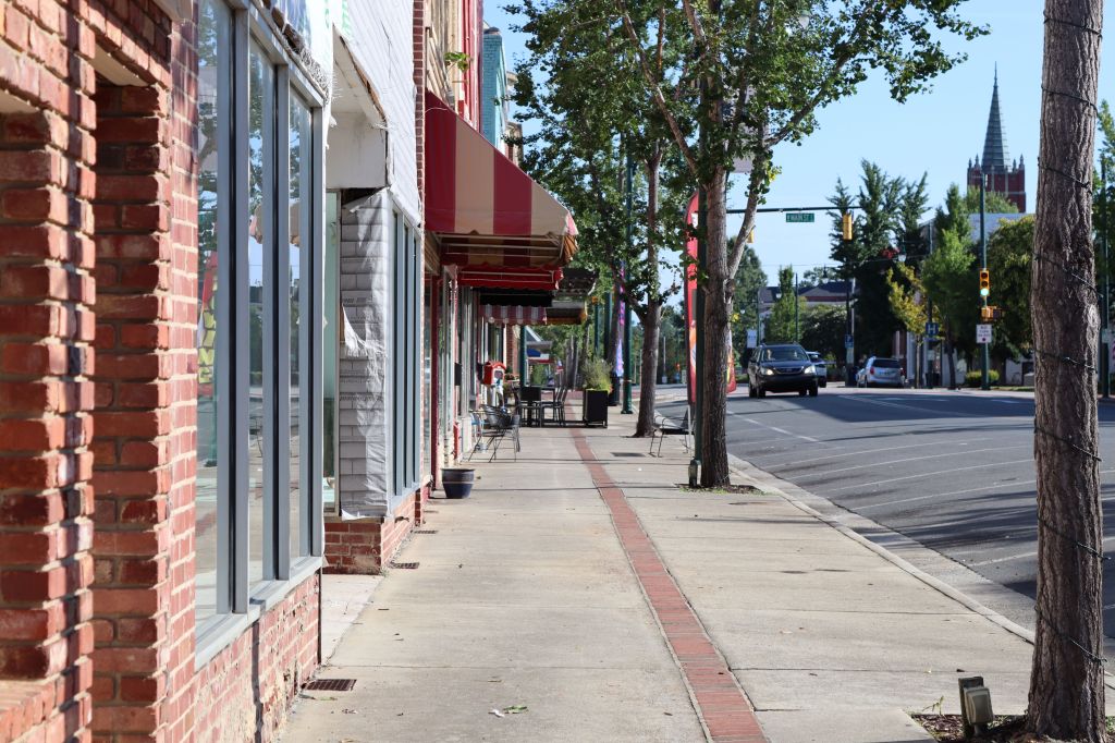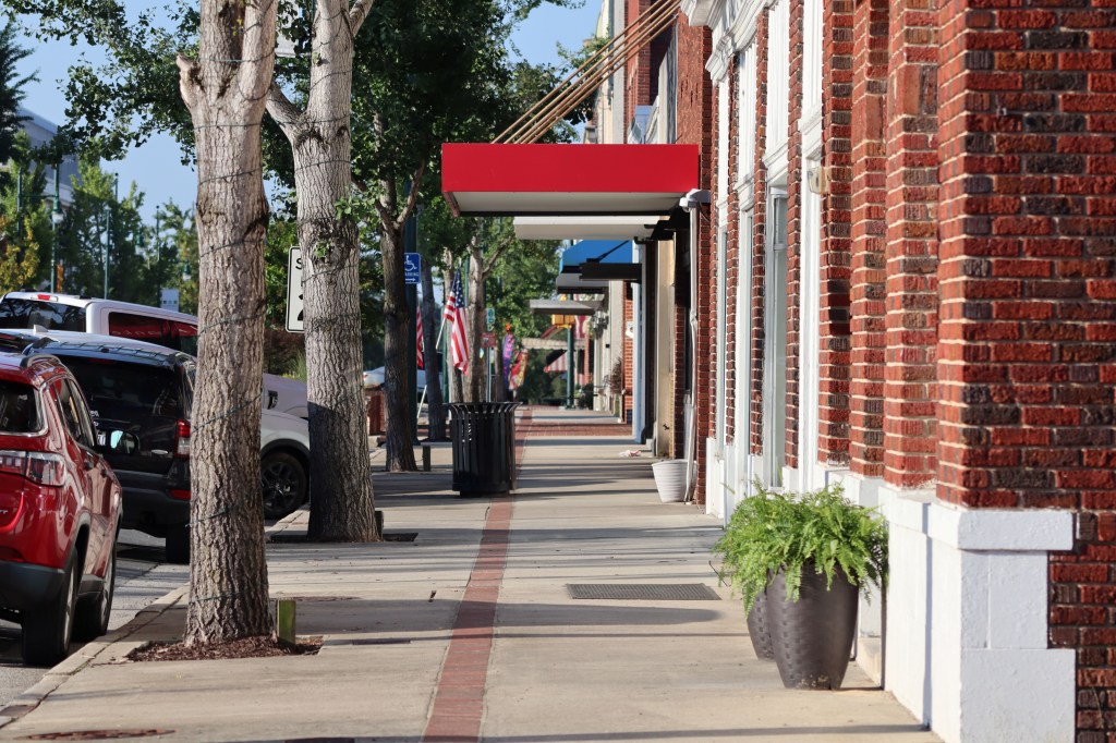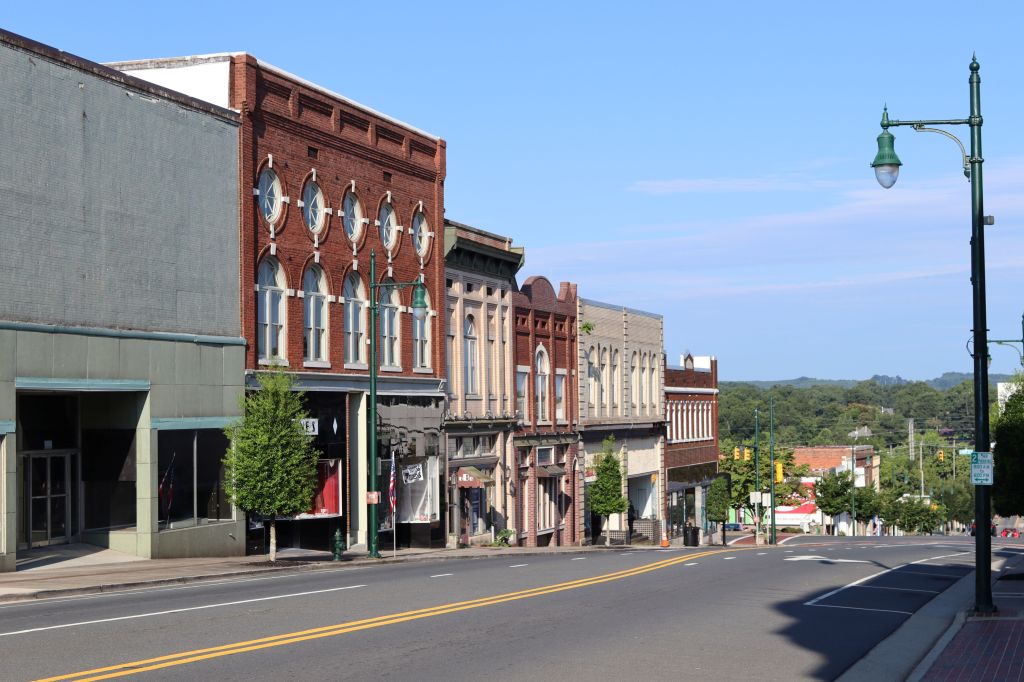 Along somewhat similar lines, I tried to capture streetscapes. Because I was taking photos early on a Sunday morning, there were almost no cars parked in front of the businesses downtown.
