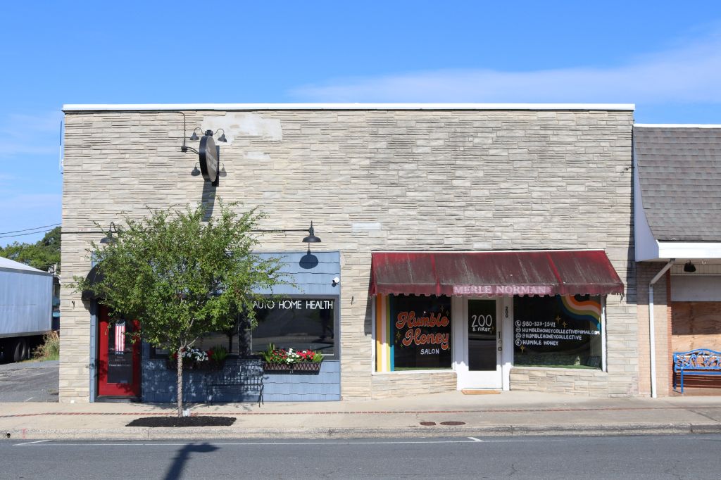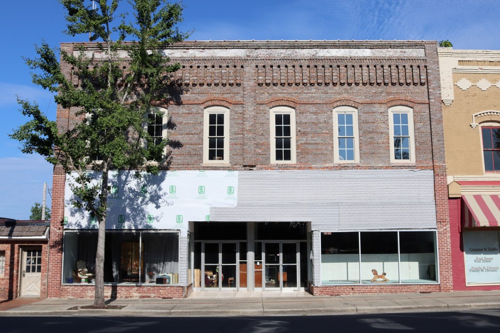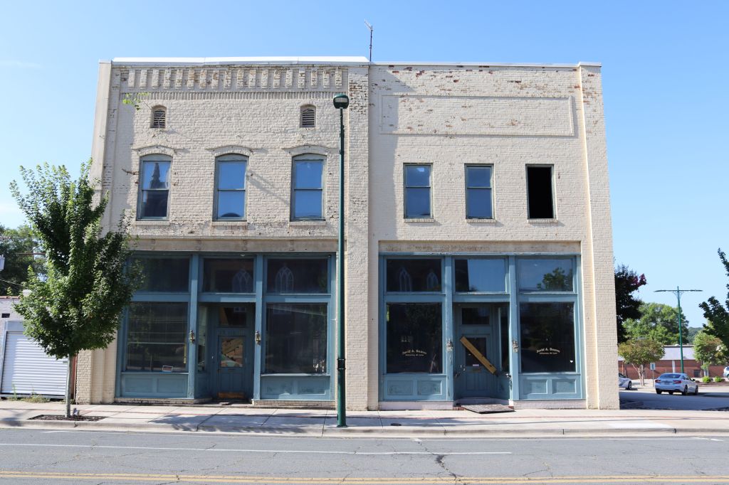 In 2020, this former bakery building turned law office was destroyed in a fire that started in a house across the street. Since then, the building has been left standing as an empty shell.
