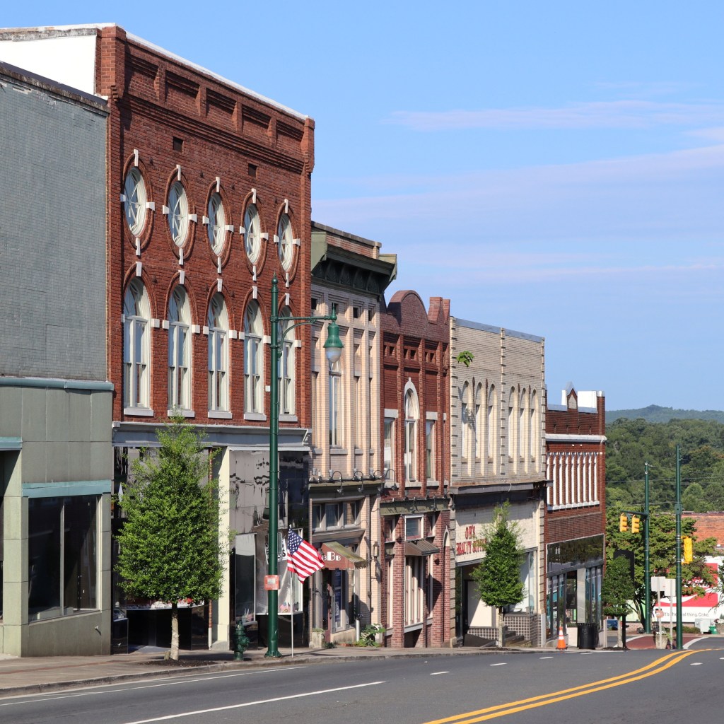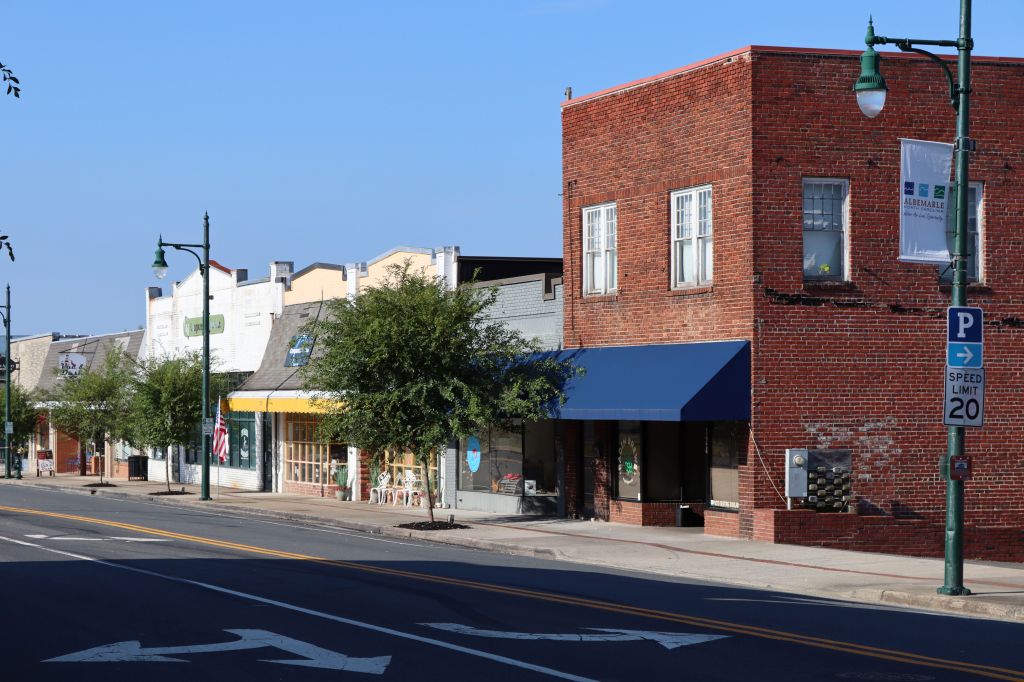 The Albemarle Hotel was built in 1923, was derelict for many years, and was restored and reopened as apartments in 2022. It is one of the largest structures in the downtown area.