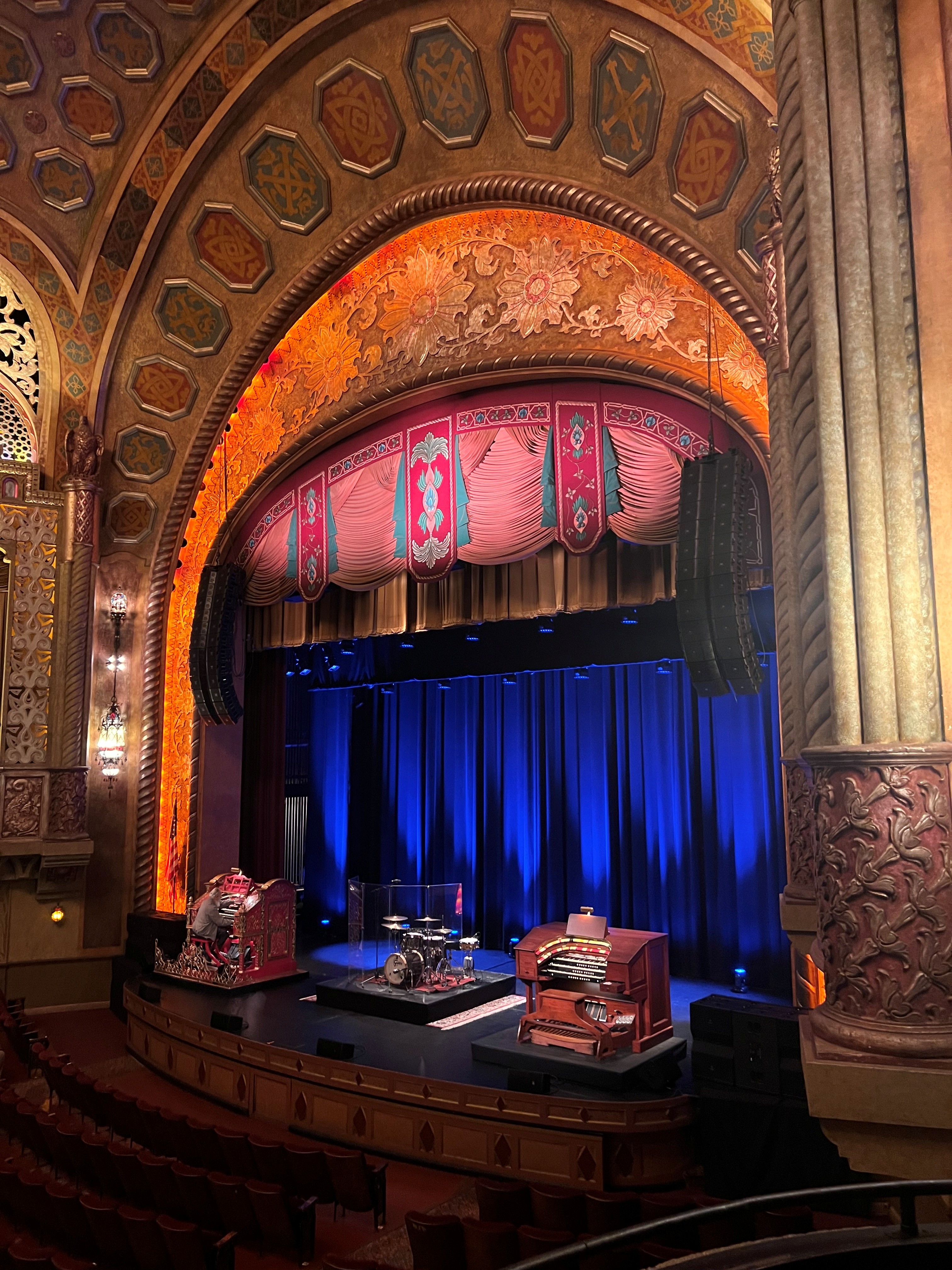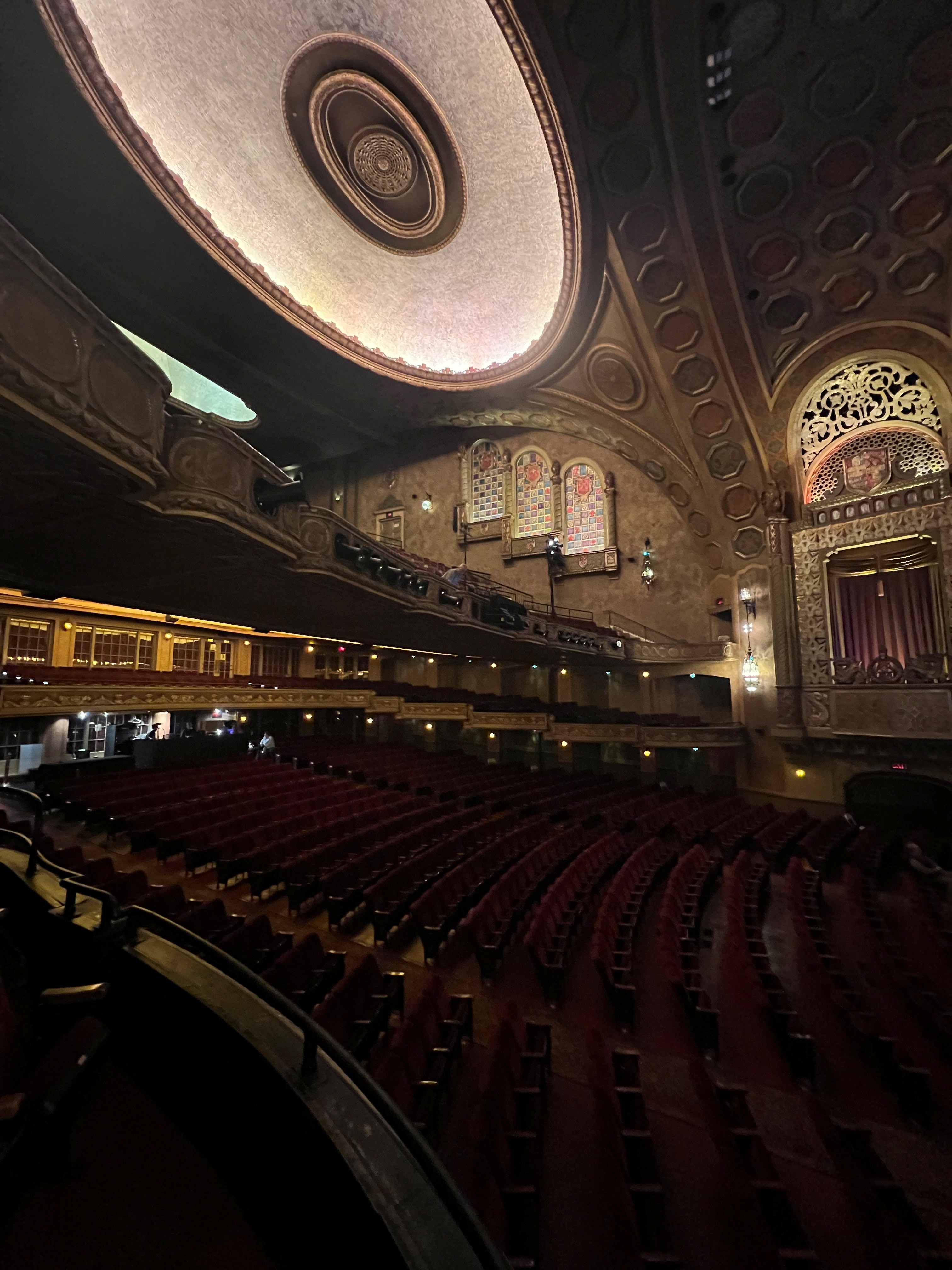 The auditorium is four stories: a main floor, a much smaller mezzanine, and then a balcony with two stories. The whole theatre seats around 2,200 people, which is slightly smaller than its capacity on opening in 1927.