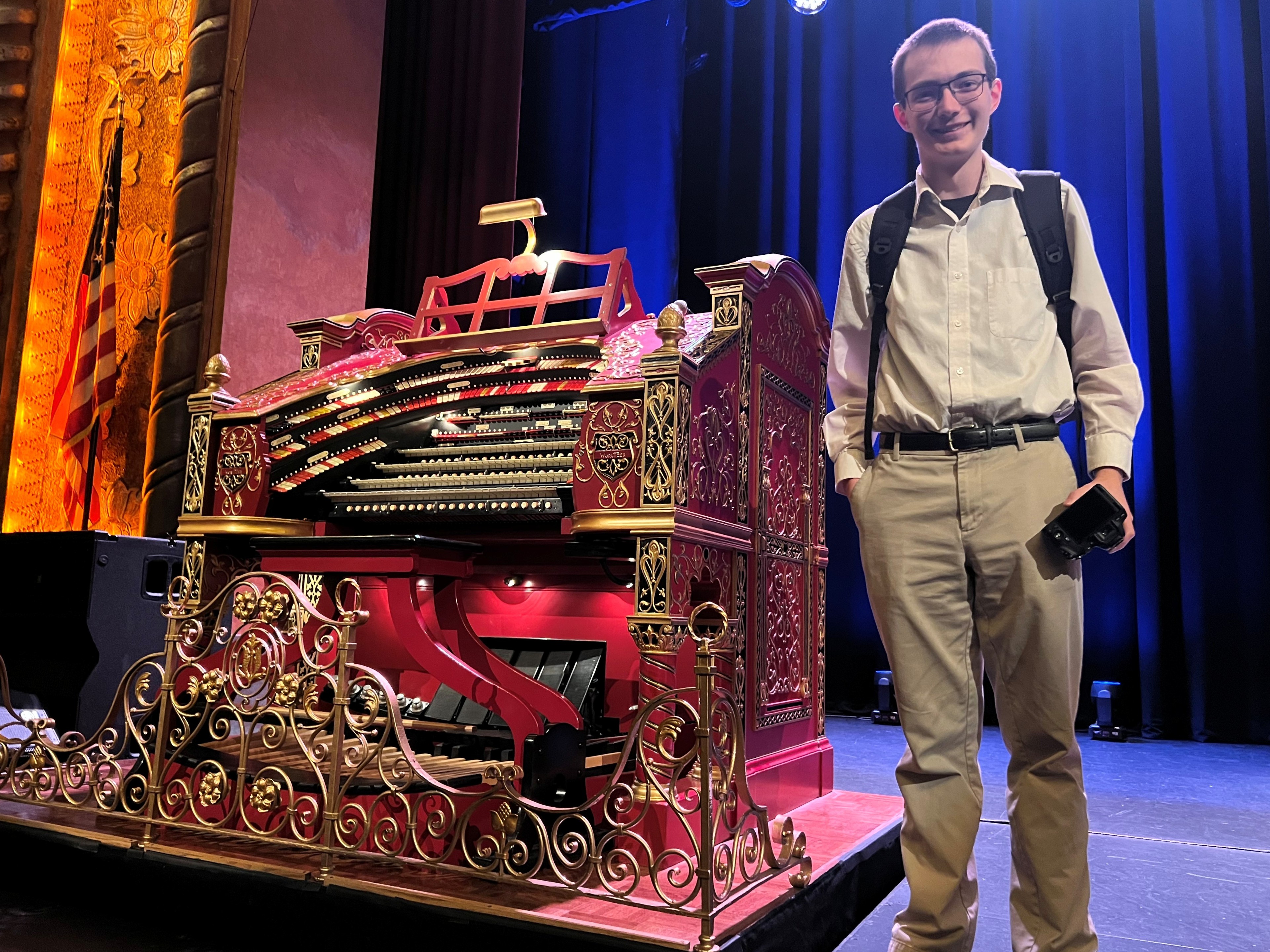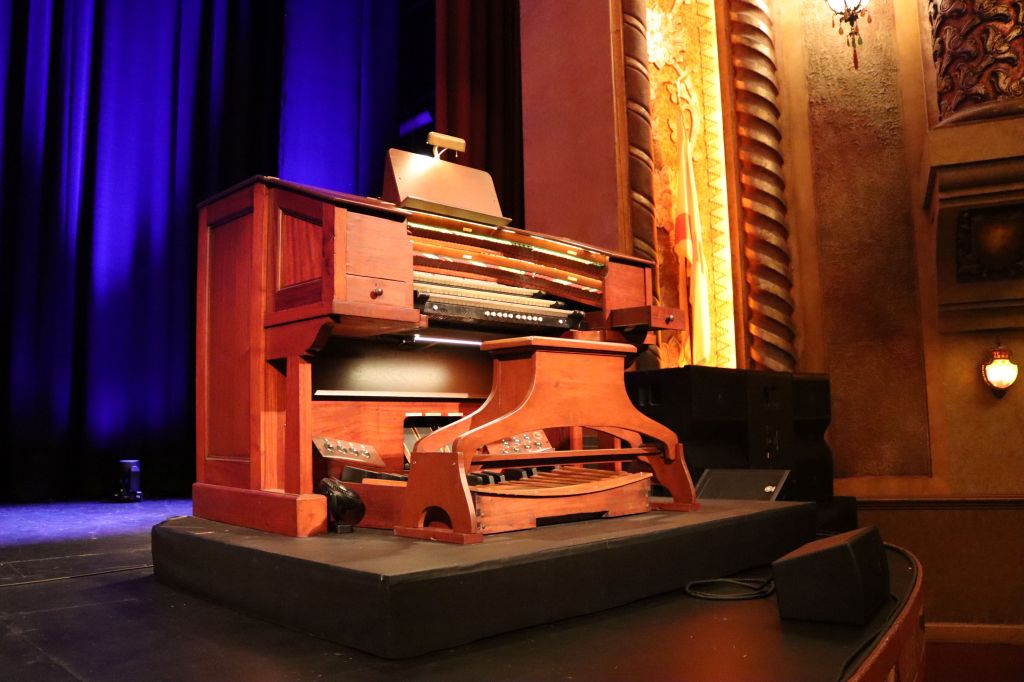 The wooden console on the right side of the stage was the temporary replacement built while Bertha was being restored. Because it is built from several different consoles, it is called “Frankie,” short for Frankenstein.