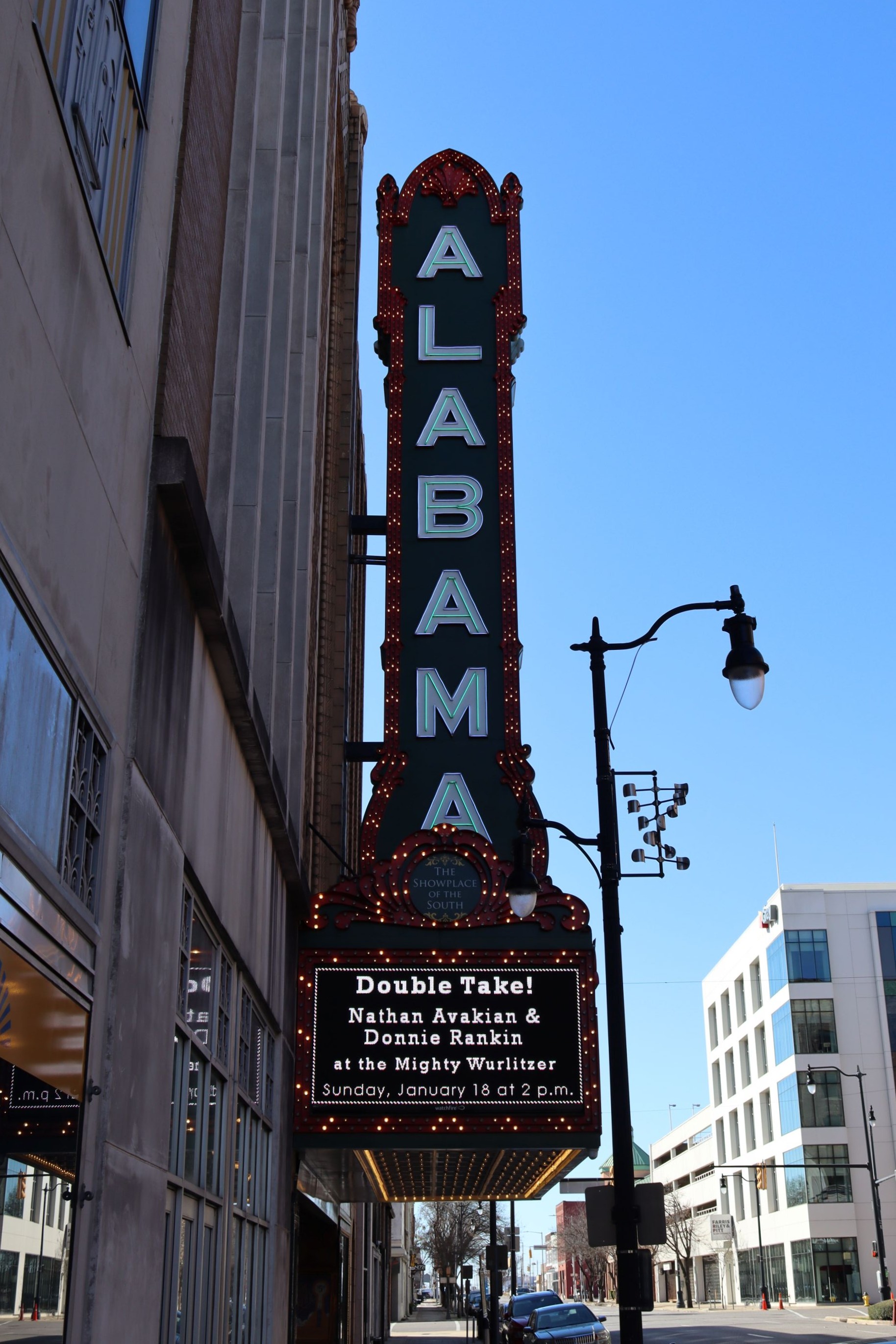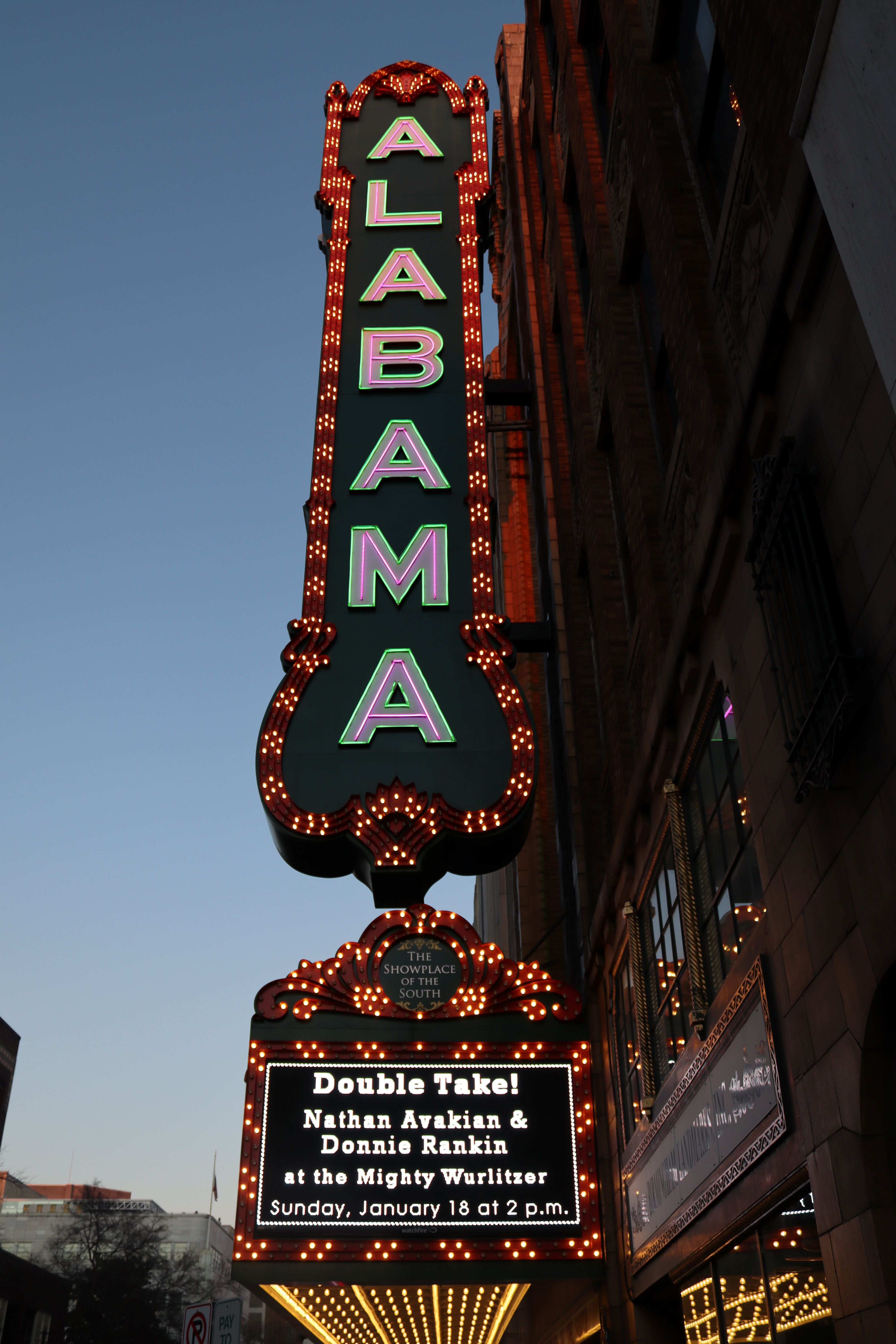 On Sunday, Mom and I traveled to Birmingham for “Double Take!” at the historic Alabama Theatre. Recently, the theatre’s organ console needed repair work, so a temporary replacement was installed. When the original console came back, the theatre was left with two organ consoles that could work simultaneously.