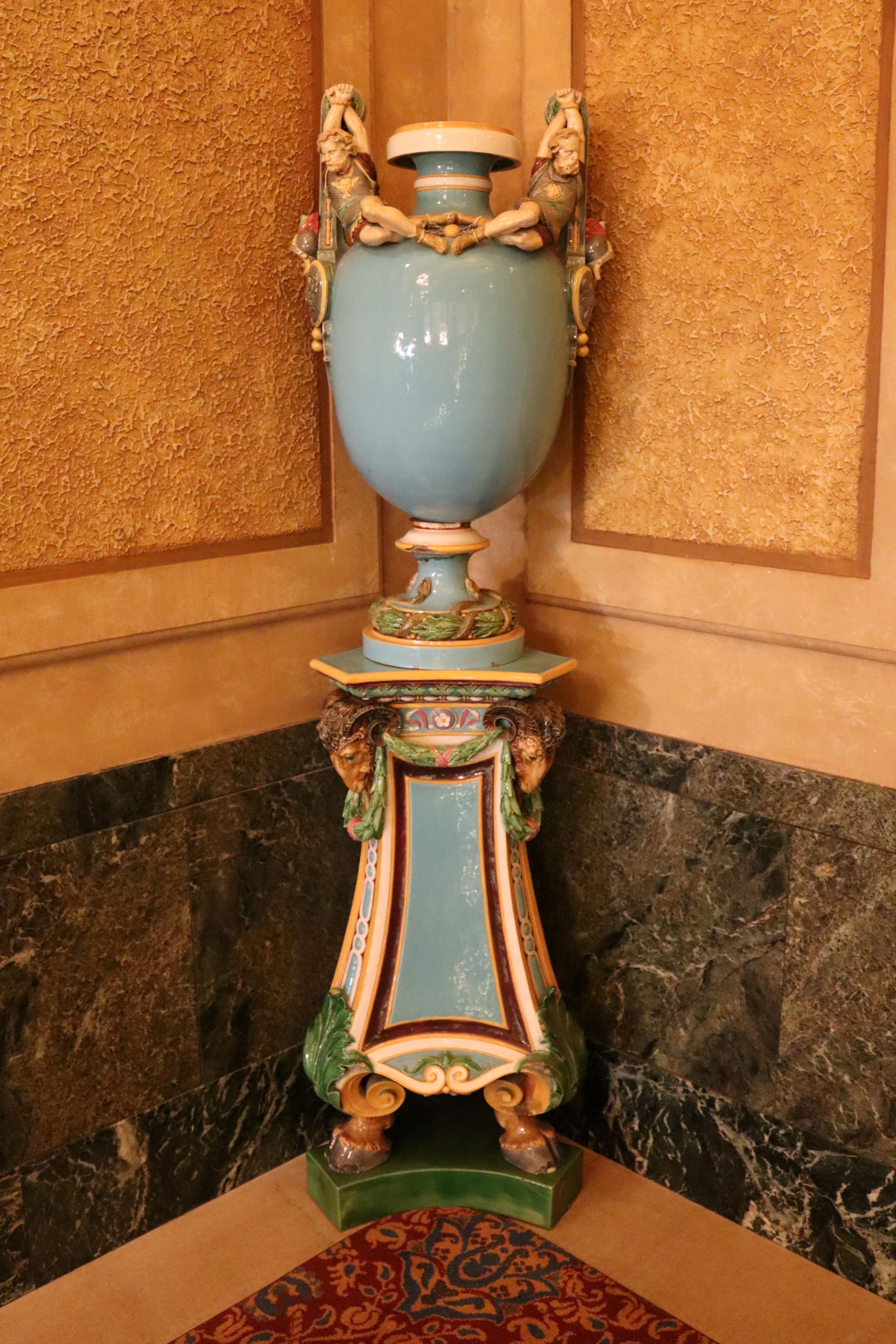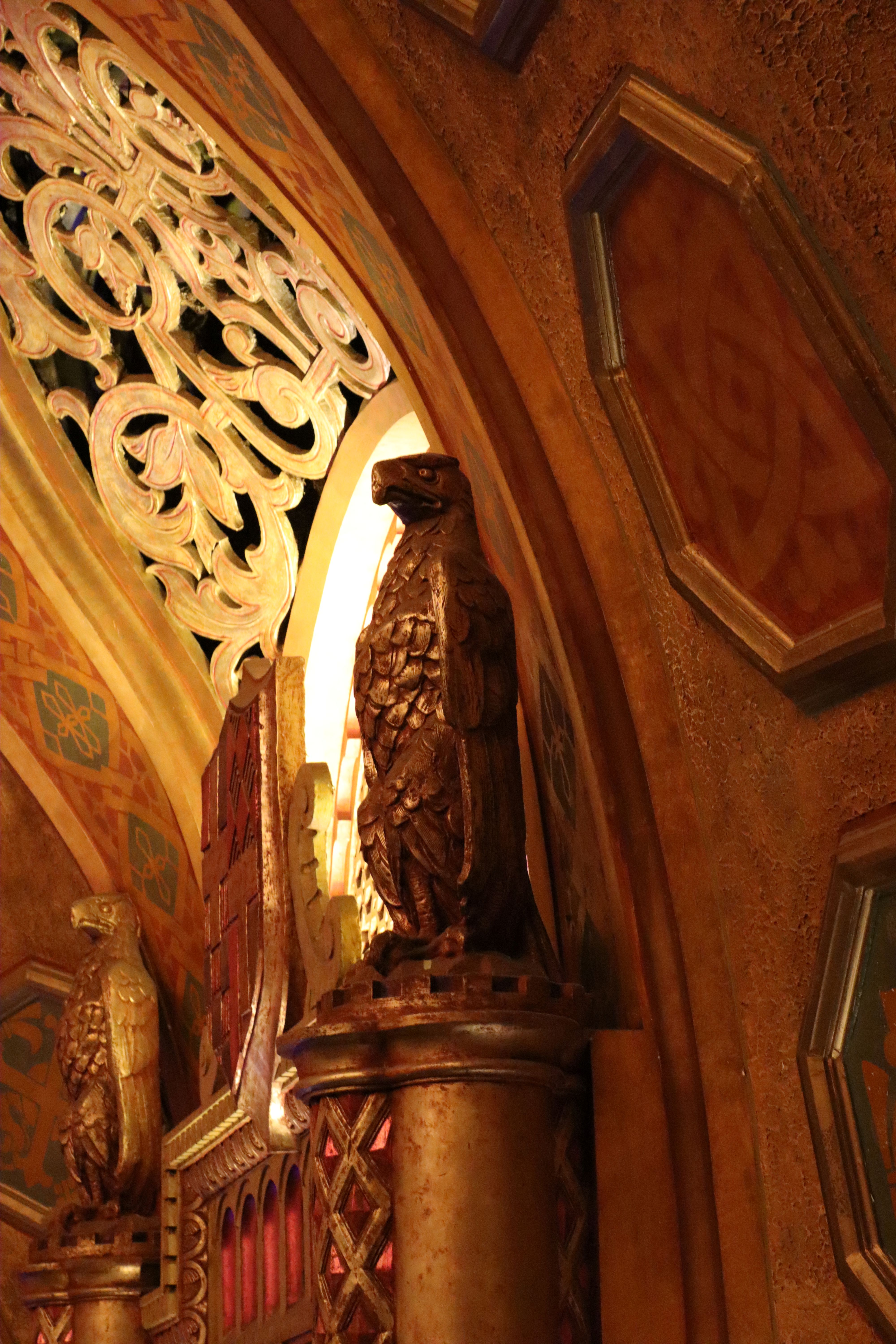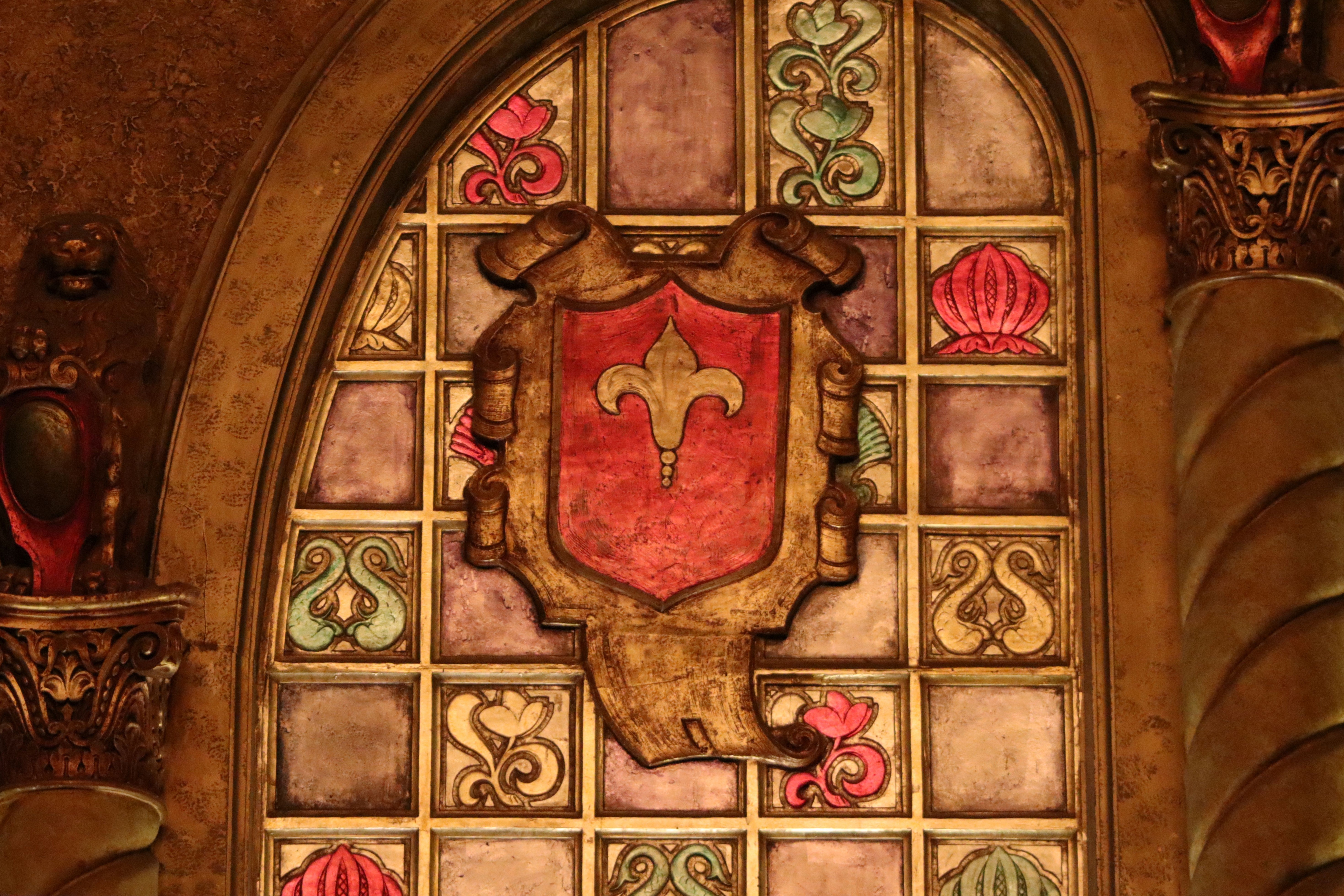 On the top level of the theatre are two more bathrooms. Like downstairs, the Men’s Room looks like an English hunting lodge. The Ladies’ Room, however, is in a Chinese style.