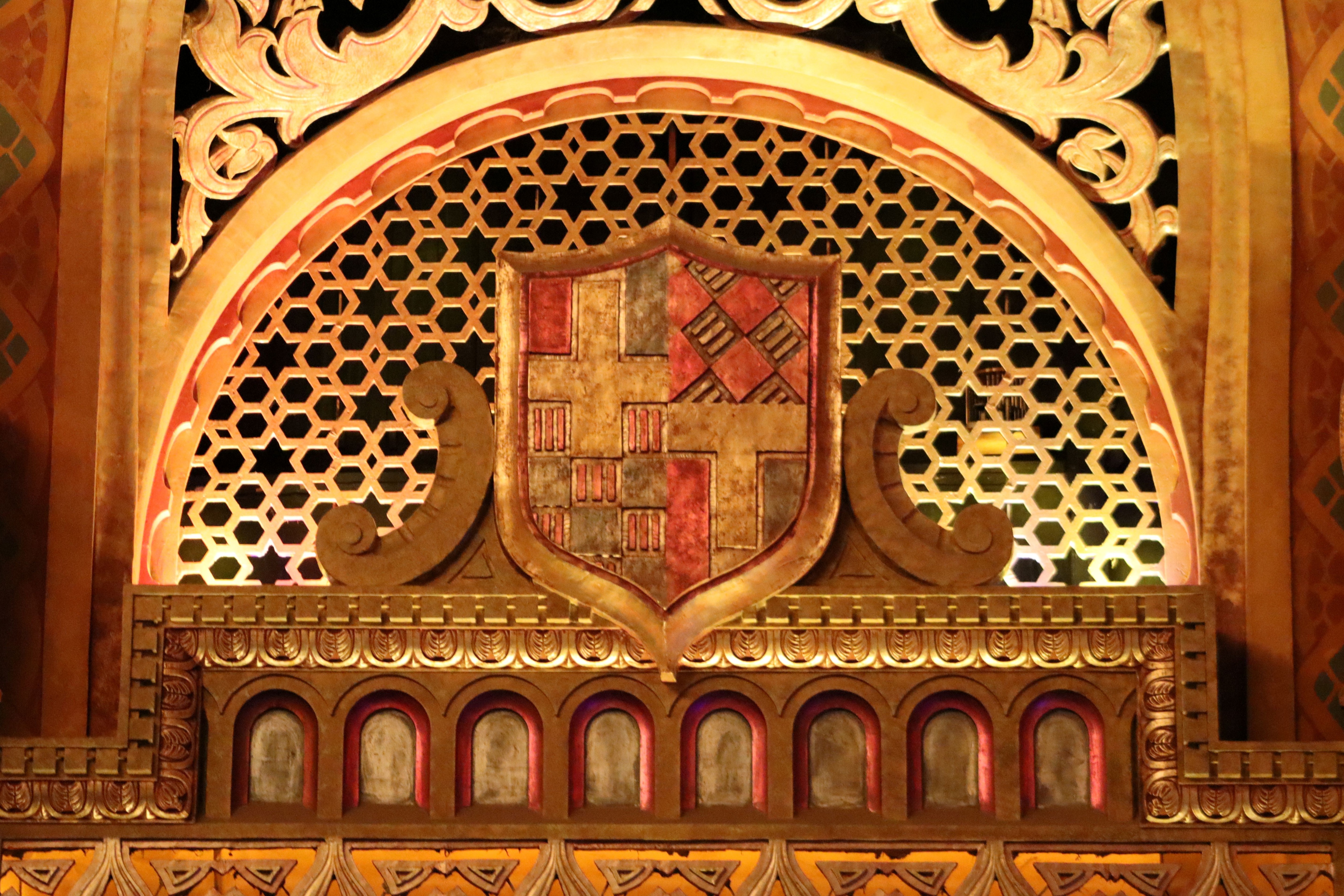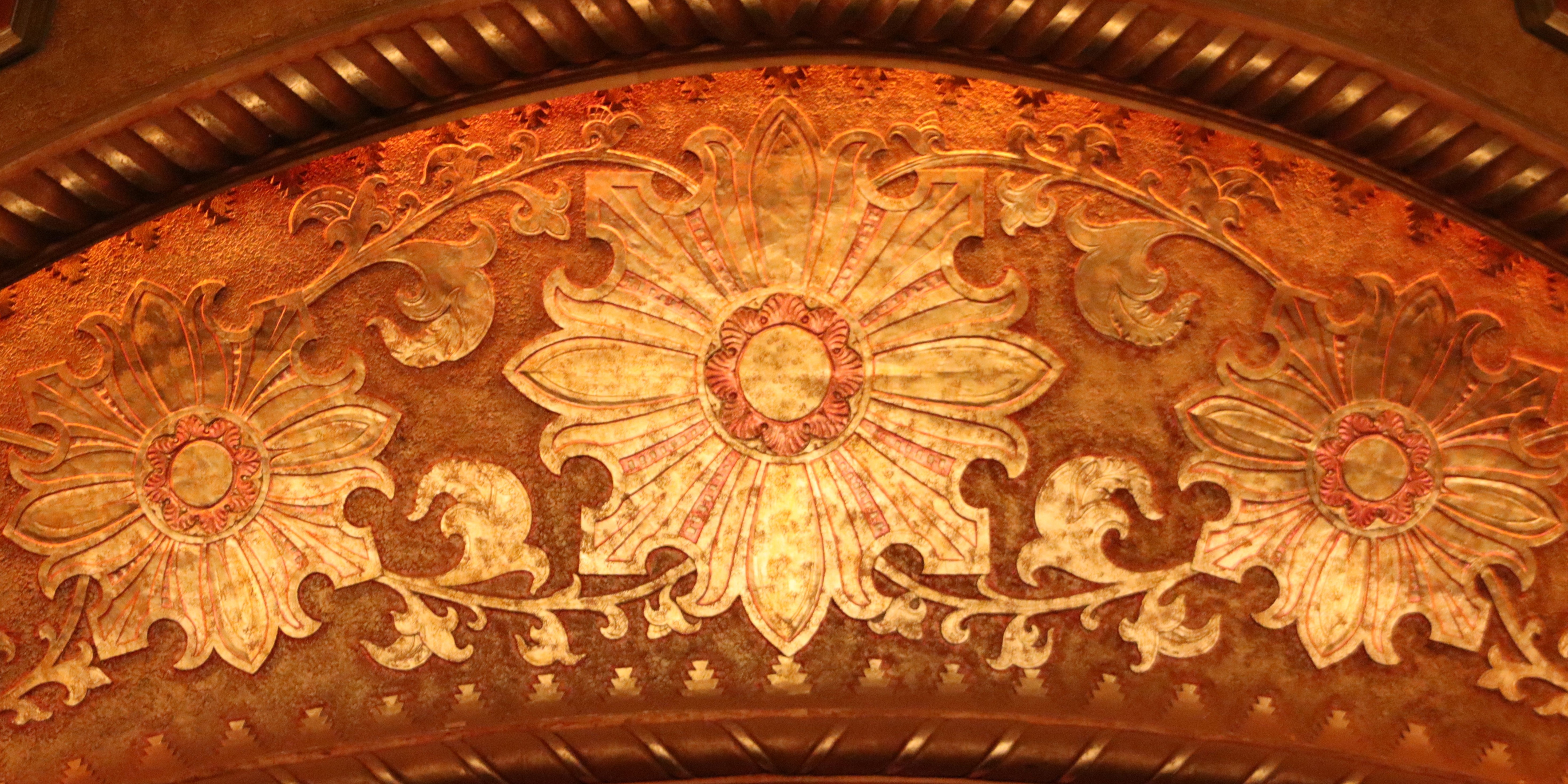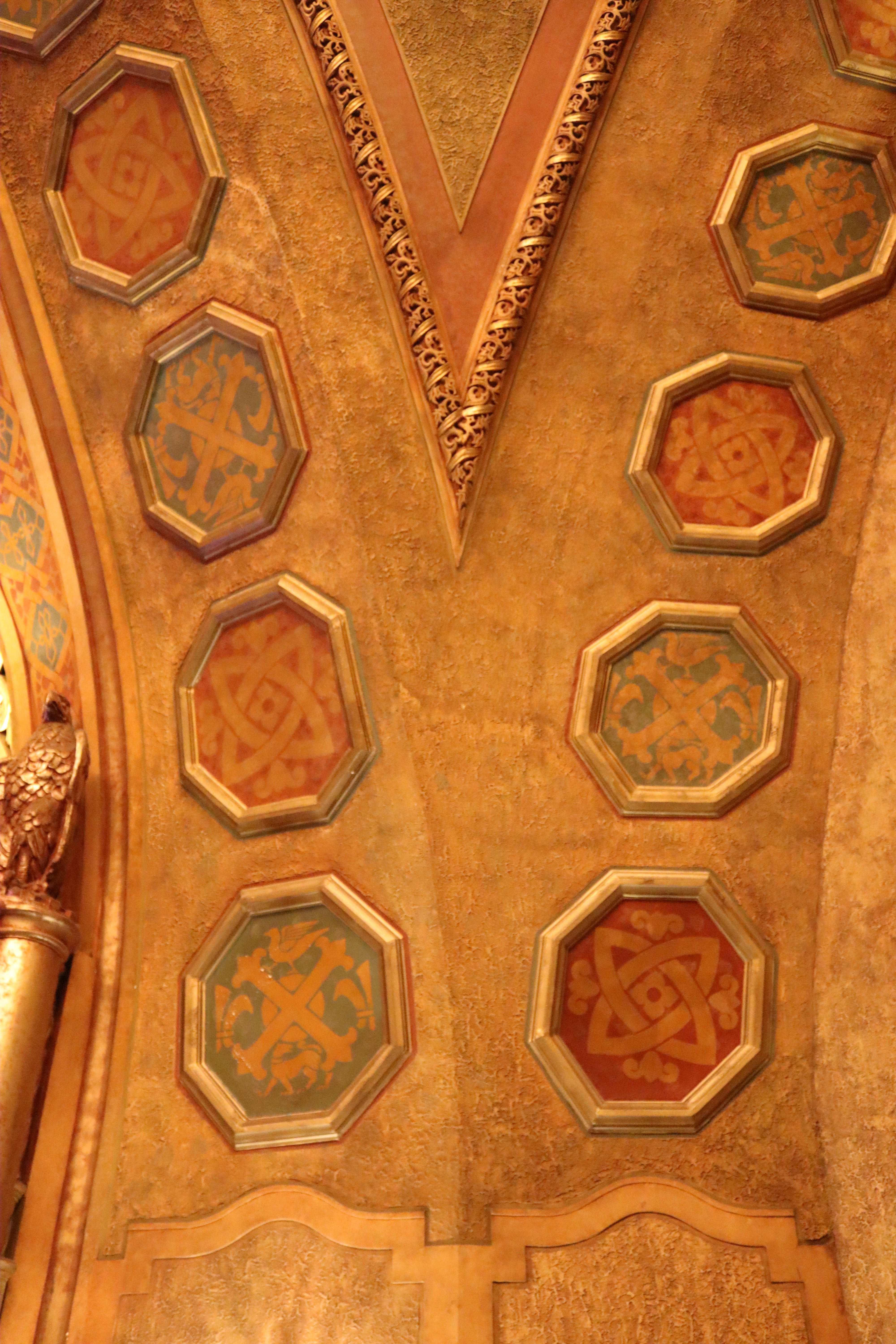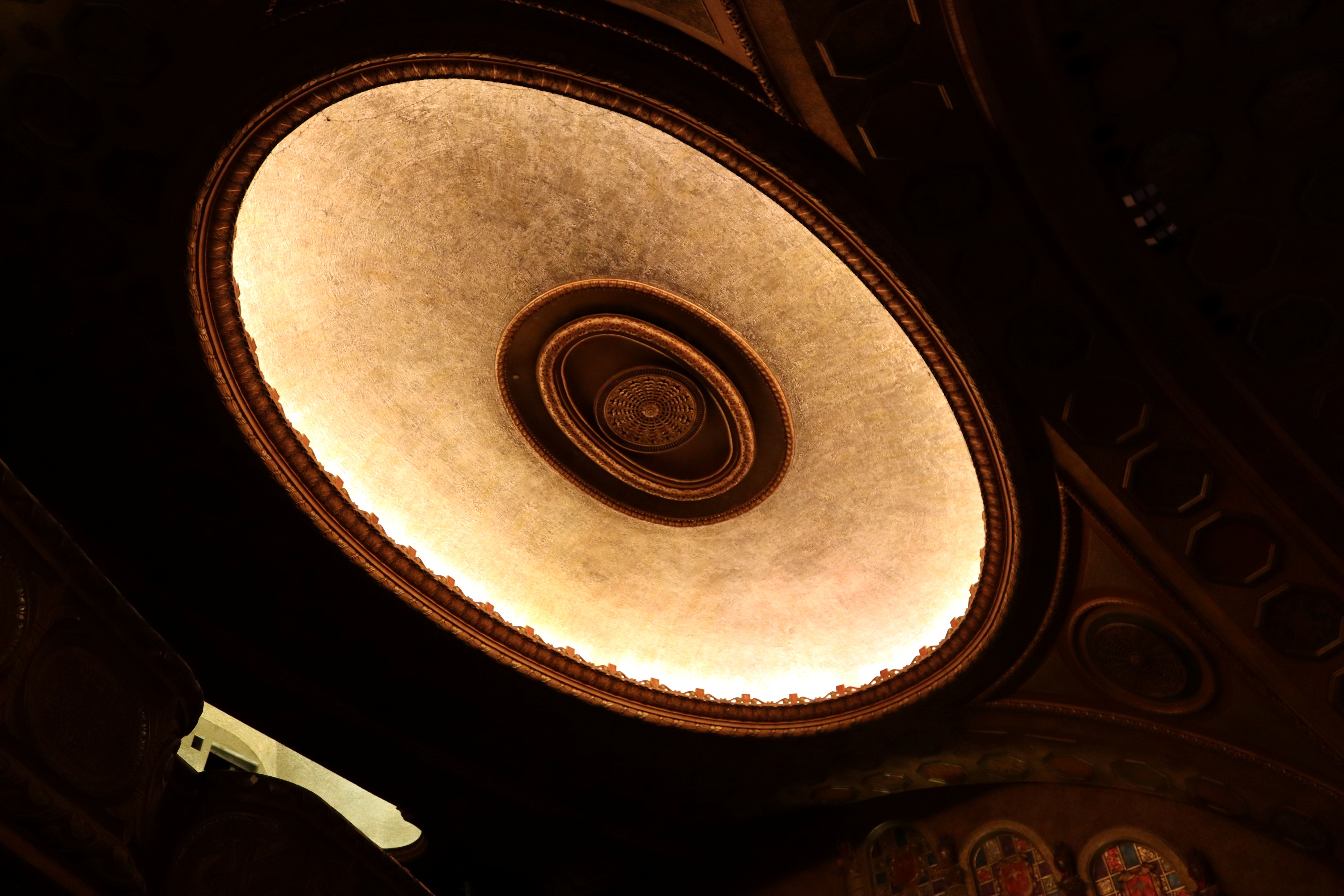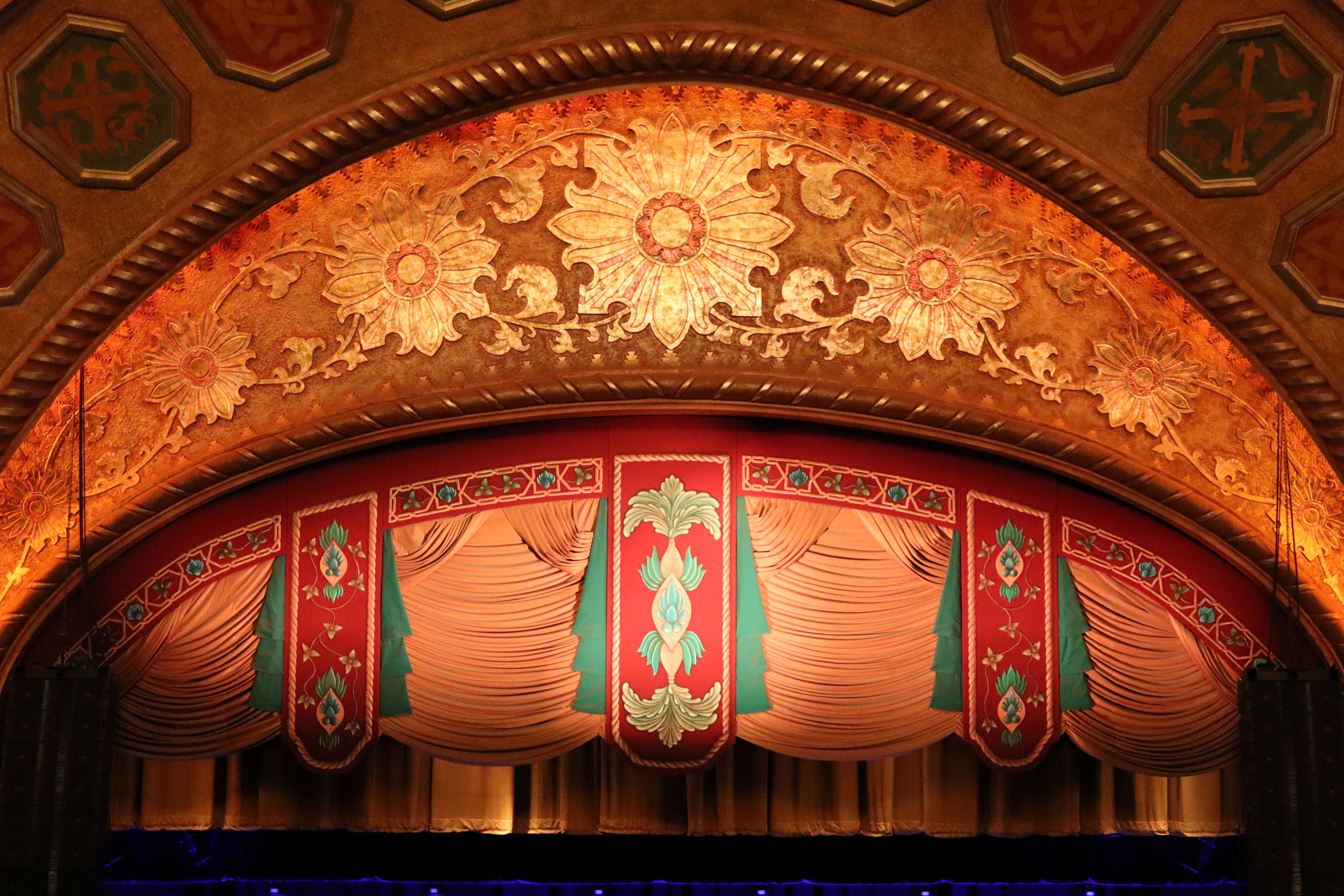The auditorium itself is also filled with artistic details. The large ovals in the ceiling are designed to help with the acoustics.