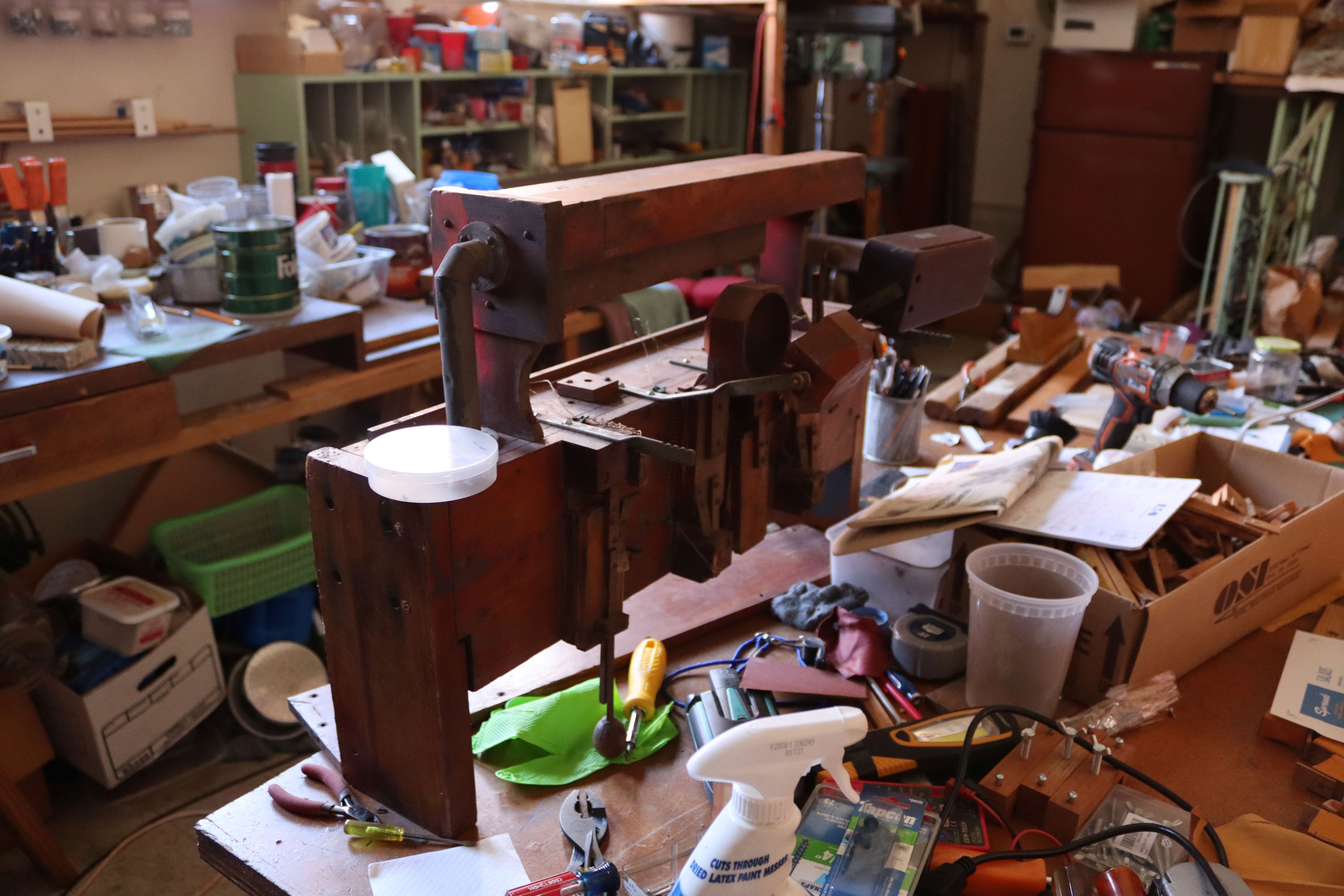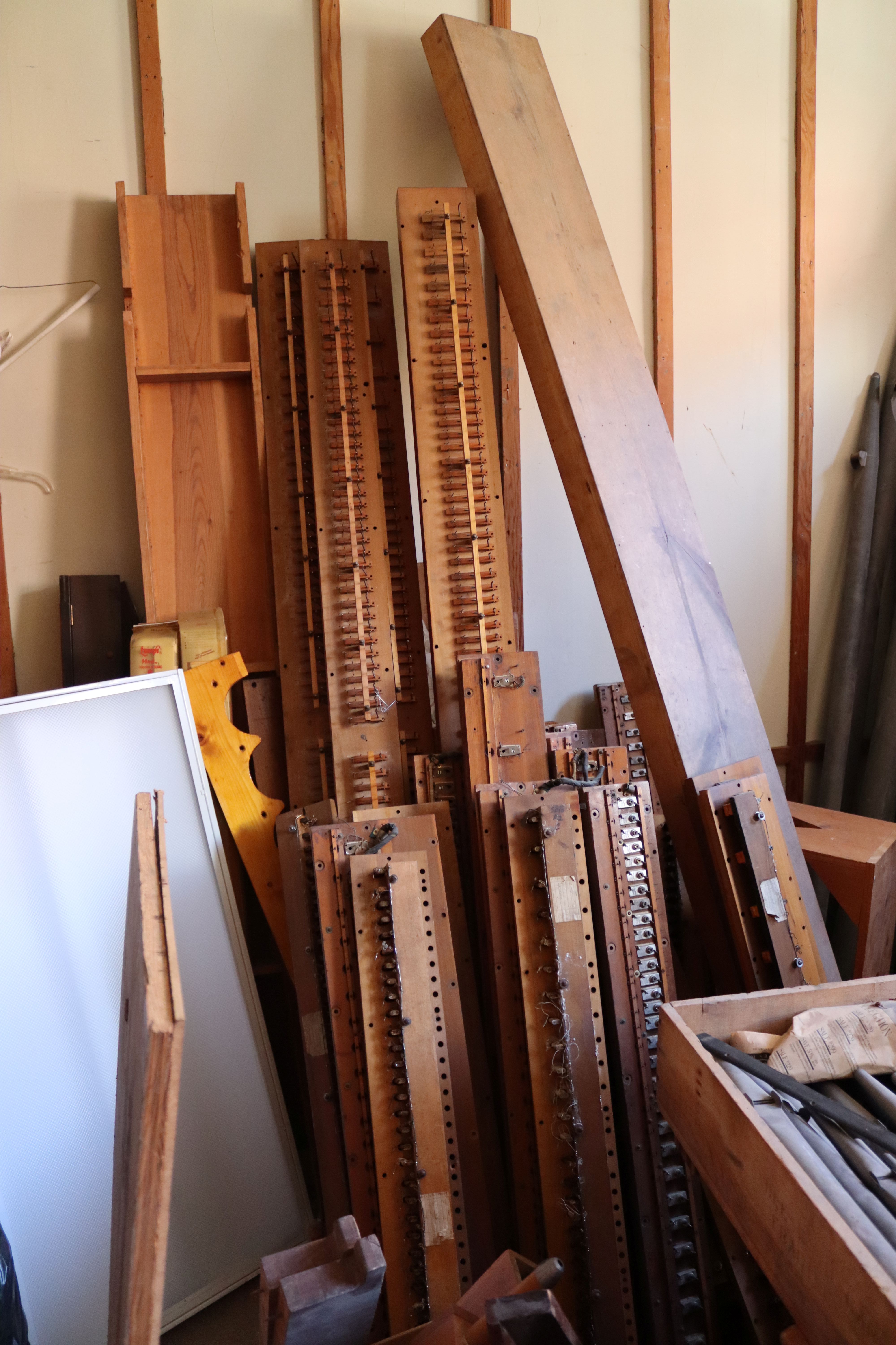 During our tour, I got to take a peek behind the scenes and see the organ shop. The space is filled with parts for both Alabama’s organ and parts for other jobs. The contraption on the table is the toy counter, which produces some of the sounds controlled by junk drawers like the one seen earlier.