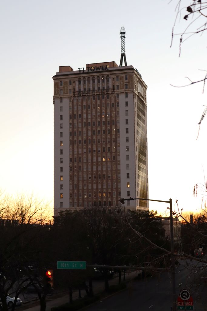 Last but not least, I was surprised when we pulled into the parking deck to see a Birmingham Landmark I had only heard about before. The Thomas Jefferson Hotel (now the Thomas Jefferson Tower) was built in 1929. The unusual tower on its roof was designed as a Zeppelin mooring mast, though unsurprisingly it was never used. The mast was restored to its original appearance during a 2015-2017 restoration of the building.