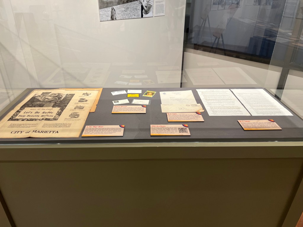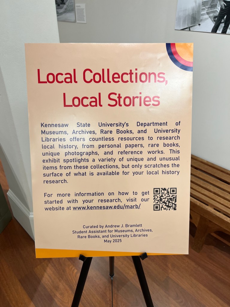 In the summer of 2025, I curated this exhibit for the Department of Museums, Archives, and Rare Books at KSU. It focuses on local history research resources at MARB and the University Libraries.