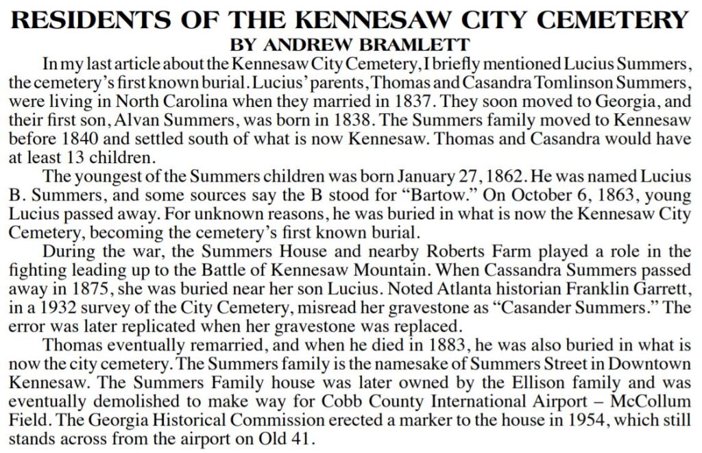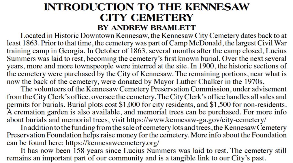 This series is about the Kennesaw City Cemetery.