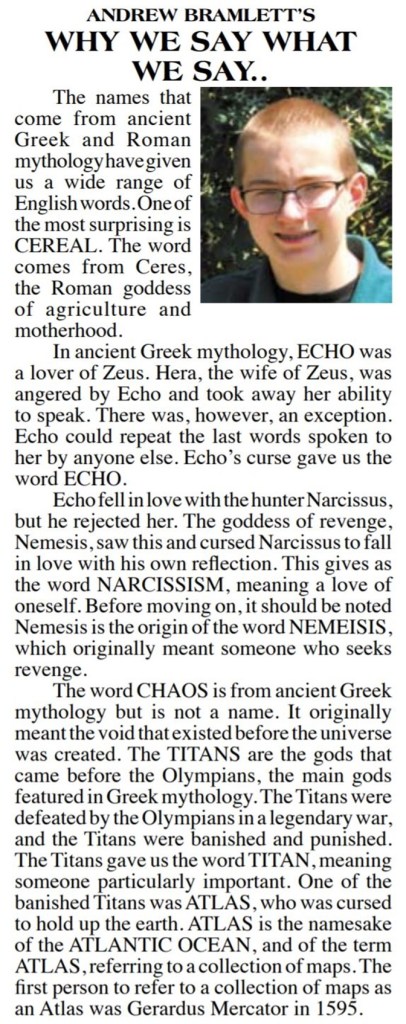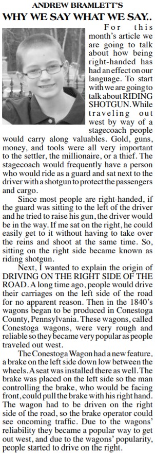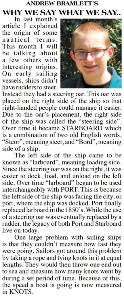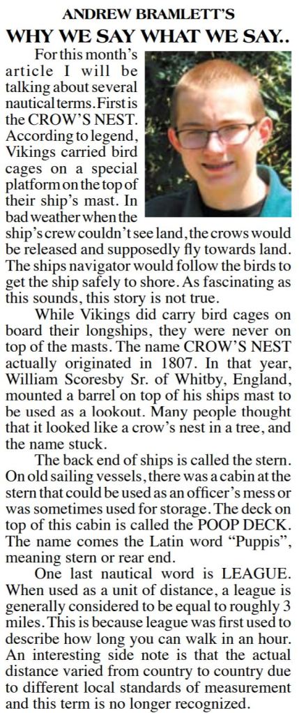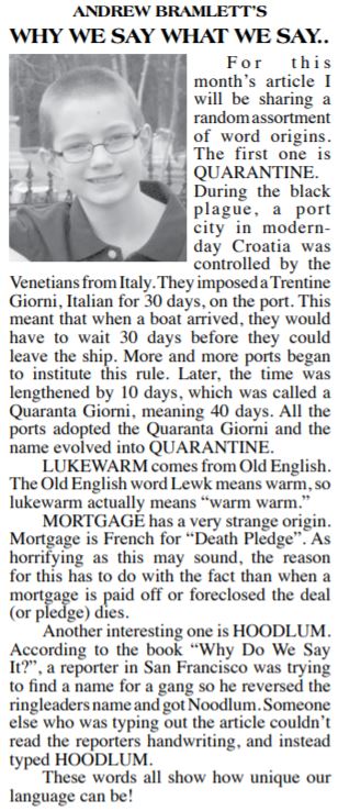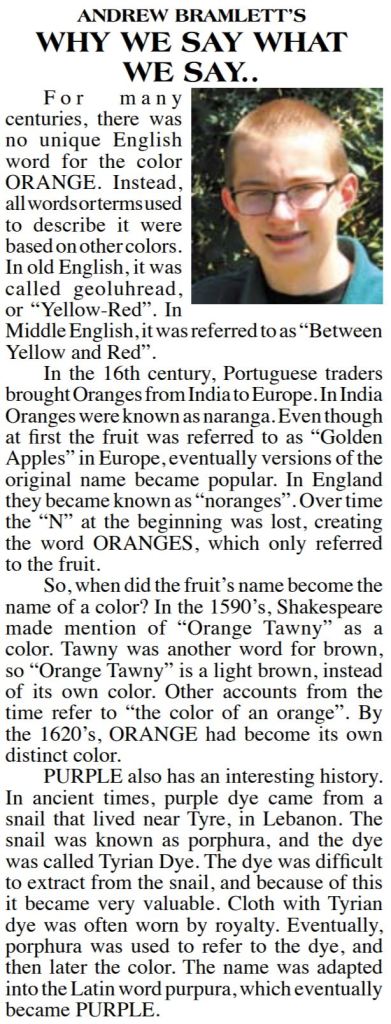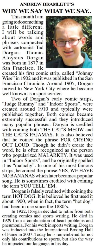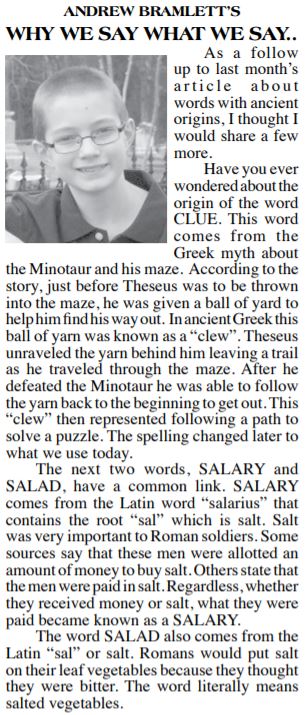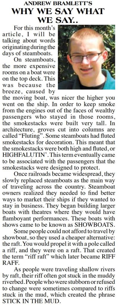 This series is titled “Why We Say What We Say,” and is about the origins of words and phrases.